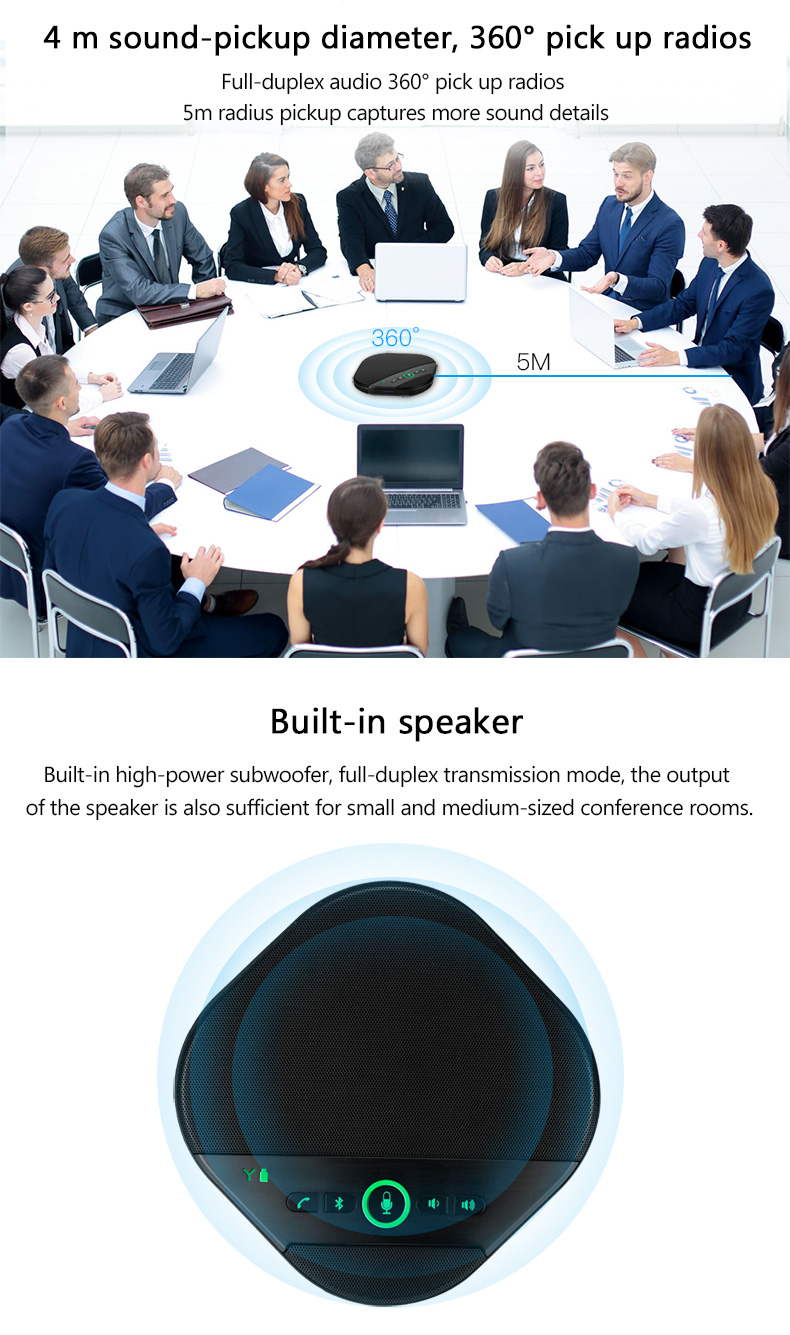 بلٹ ان ہائی فیڈیلیٹی آل پوائنٹنگ 360 ڈگری آڈیو پک اپ فراہم کرتی ہے۔